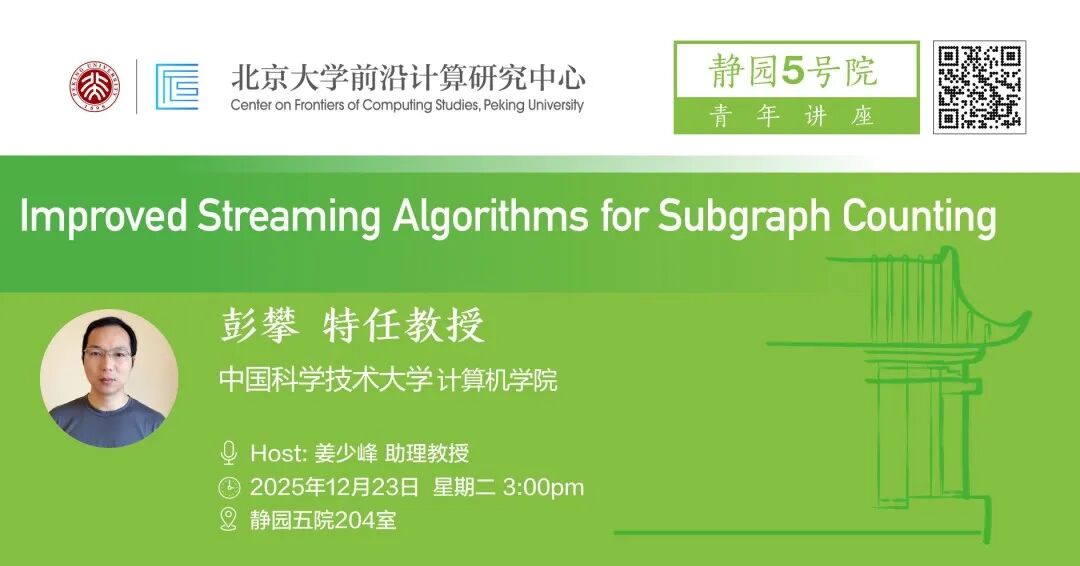 彭攀,中国科学技术大学计算机学院特任教授,入选国家级青年人才计划。曾获中国科学院软件研究所博士学位。曾于中国科学院软件所助理研究员,曾于德国多特蒙德工业大学、奥地利维也纳大学做博士后,曾担任英国谢菲尔德大学终身制讲师(助理教授),曾在美国加州大学伯克利分校 Simons 计算理论研究院担任长期访问科学家。主要研究图算法、大数据算法及其在机器学习、数据挖掘等领域的应用。在国际会议及期刊(包括STOC、SODA、SICOMP等)上发表高水平论文50余篇。