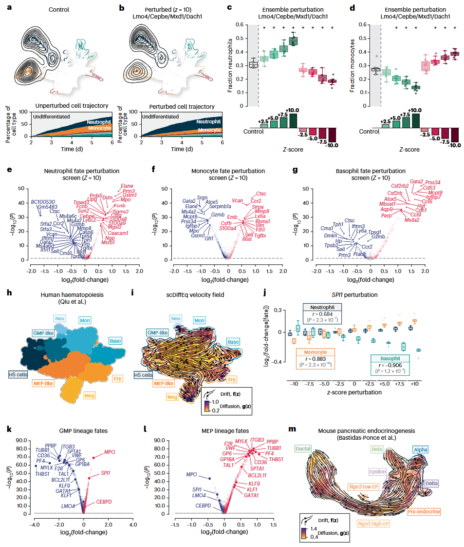 通过对关键转录因子进行in silico 扰动,scDiffEq 能预测剂量依赖的命运变化趋势,成功重现已知的造血调控规律,显示其在功能基因筛选与机制假设生成中的潜力。
