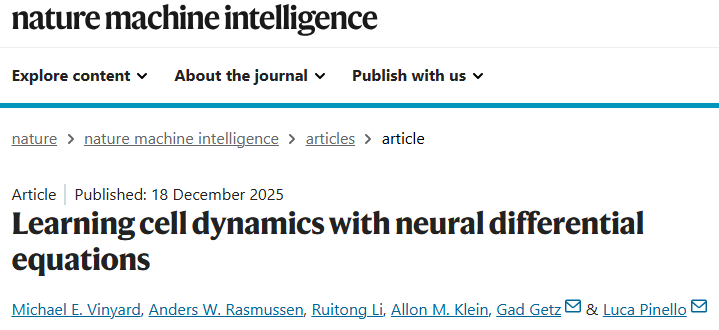 Vinyard, M.E., Rasmussen, A.W., Li, R. et al. Learning cell dynamics with neural differential equations. Nat Mach Intell (2025).