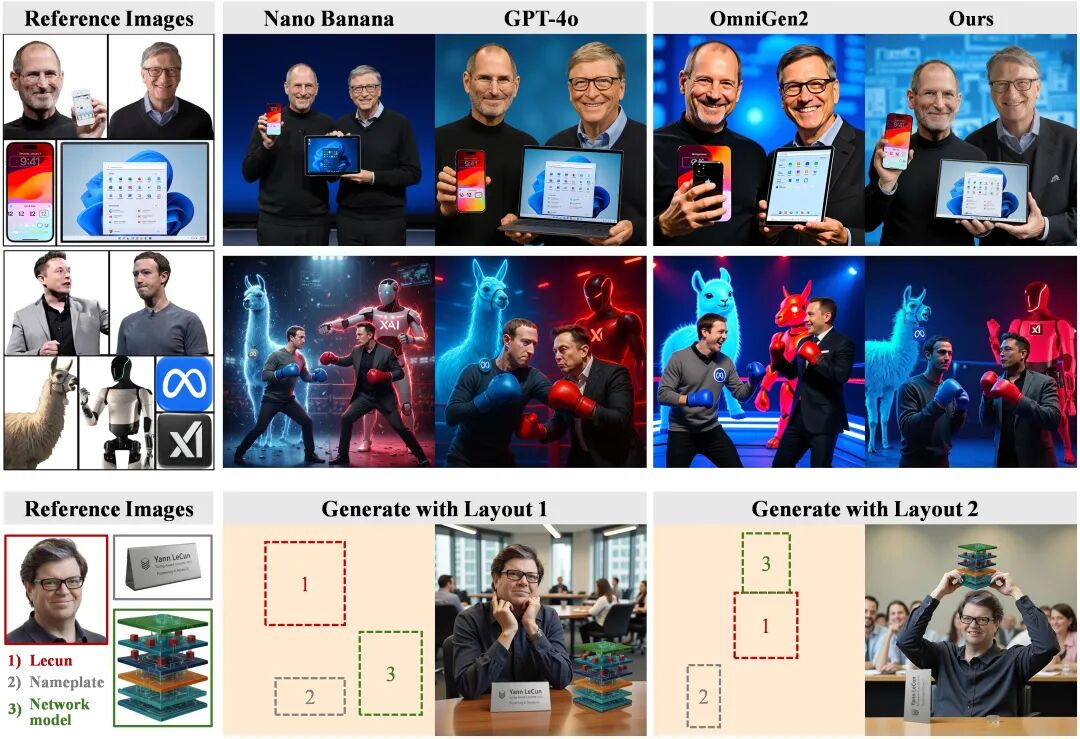 这种“前后管结构,中间管细节”的设计,使得ContextGen能够充分利用图像上下文,在保持布局控制的同时,实现对多个实例身份的高保真还原。