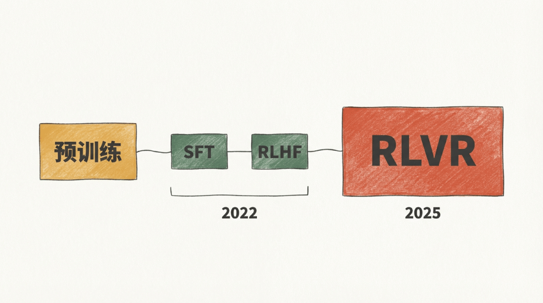 而到了 2025 年,可验证奖励的强化学习(Reinforcement Learning from Verifiable Rewards, RLVR)正式成为这条流水线上的新主力环节。