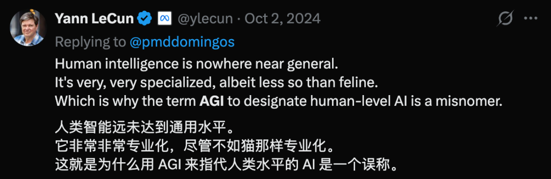 更何况对于AGI这个概念,LeCun本身就觉得毫无意义。