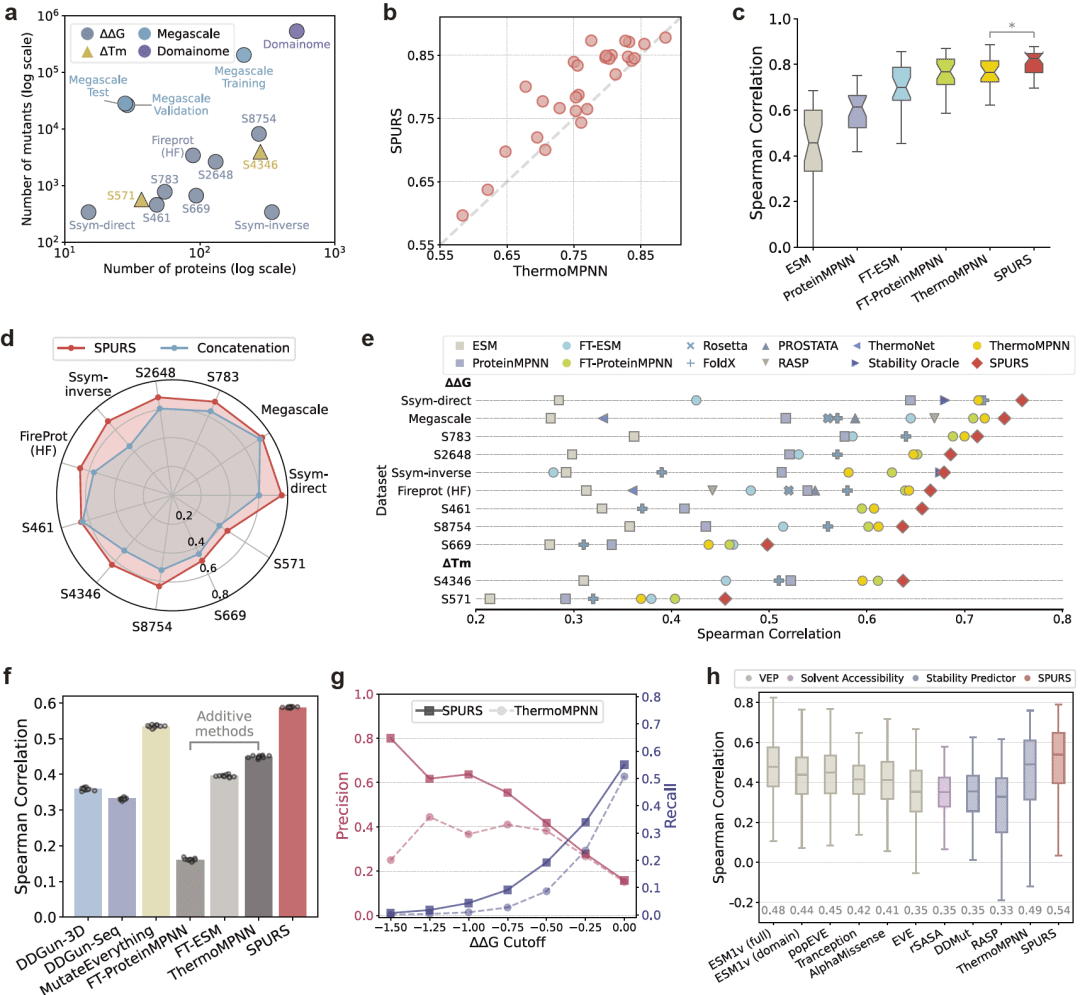 图 2|SPURS 实现高精度的蛋白稳定性预测。