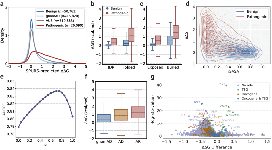 图 5|SPURS 揭示蛋白去稳定化在变异致病性中的作用。