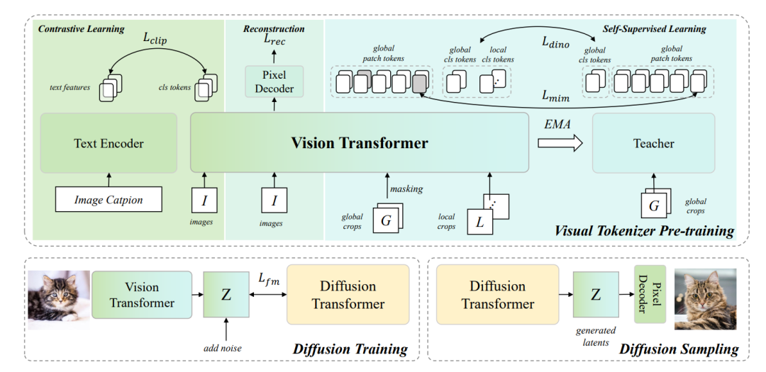 更关键的是,还带来了一款开箱即用、专为“下一代生成模型”打造的可扩展视觉分词器预训练框架——Visual Tokenizer Pre-training(以下简称VTP)。