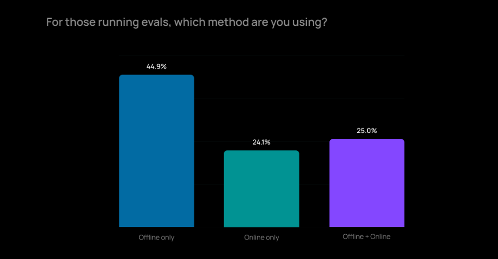 在评估方法上,行业呈现出了混合模式。近四分之一的团队会同时采用离线和在线两种评估方式。