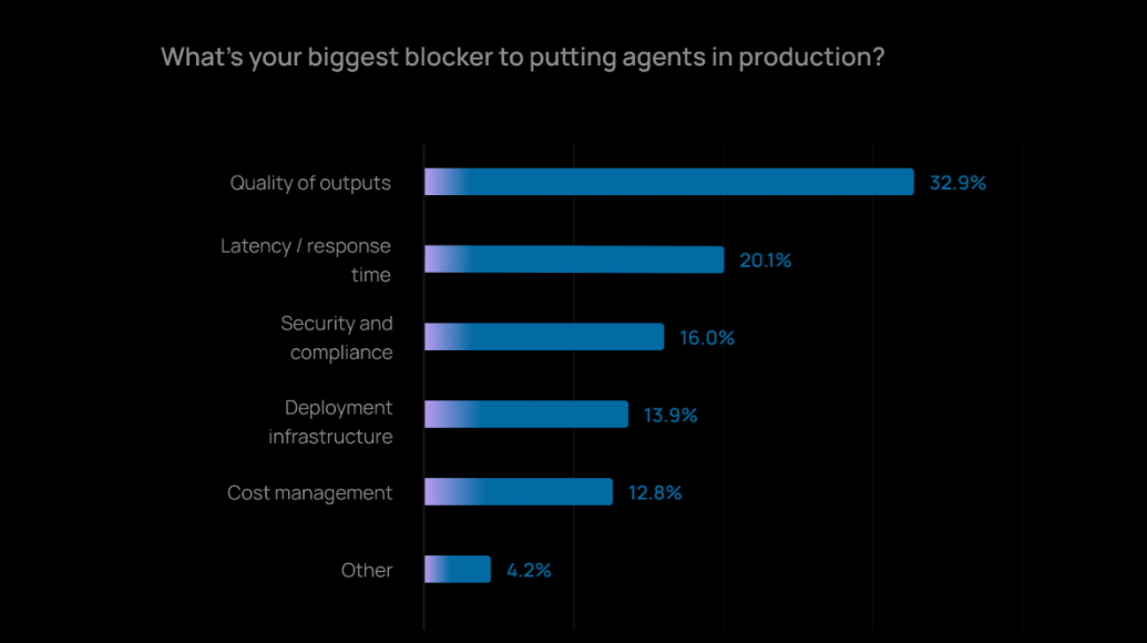 2025 年,让 Agent 实际投产、落地应用的最大障碍已经不再是成本问题了,而是「质量」。如何让 Agent 输出可靠、准确的内容,仍然是最难的部分。