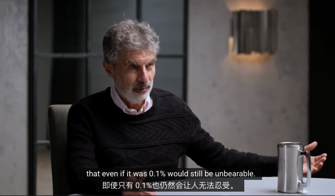 哪怕只有1%的概率让世界消失、人类灭绝,或是让全球独裁者借助AI掌控世界,这种风险也是无法接受的。如果概率是千分之一,同样不可容忍。