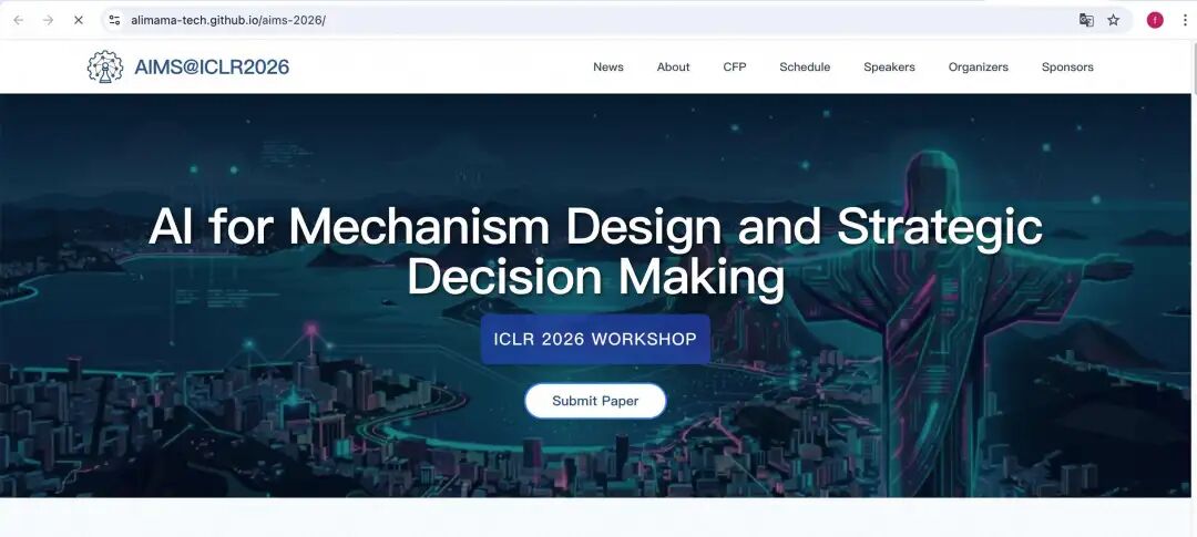 近日,被称为国际最具影响力的机器学习三大顶级会议之一的ICLR宣布,阿里妈妈牵头发起的“AI for Mechanism Design and Strategic Decision Making”(简称 AIMS)专题研讨会(Workshop),在激烈竞争中脱颖而出,已通过评审并将在ICLR 2026 会议期间举办。这是ICLR首次设立聚焦机制设计方向的Workshop,在行业具有显著的开创意义。AIMS论文投稿通道已开放,面向全球研究者征集原创成果,截止日期为2026年1月30日。