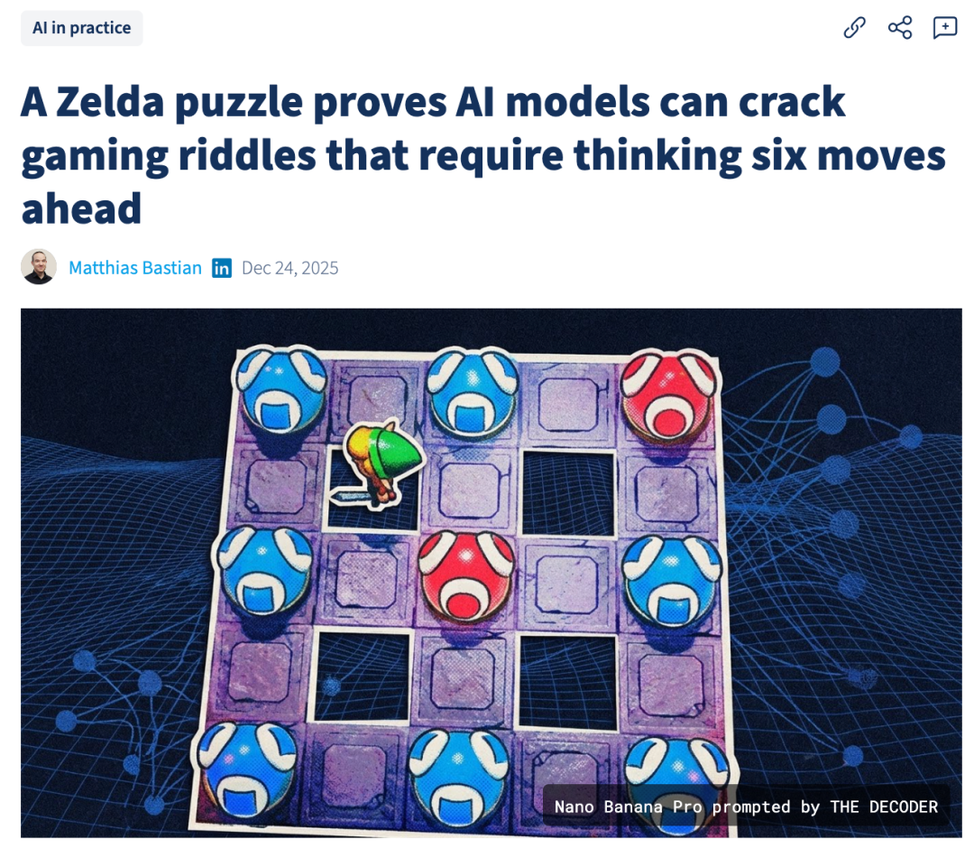 比如在《塞尔达传说》里那种需要预判6步以上的变色谜题,现在的AI模型已经能像解数学题一样解开了。