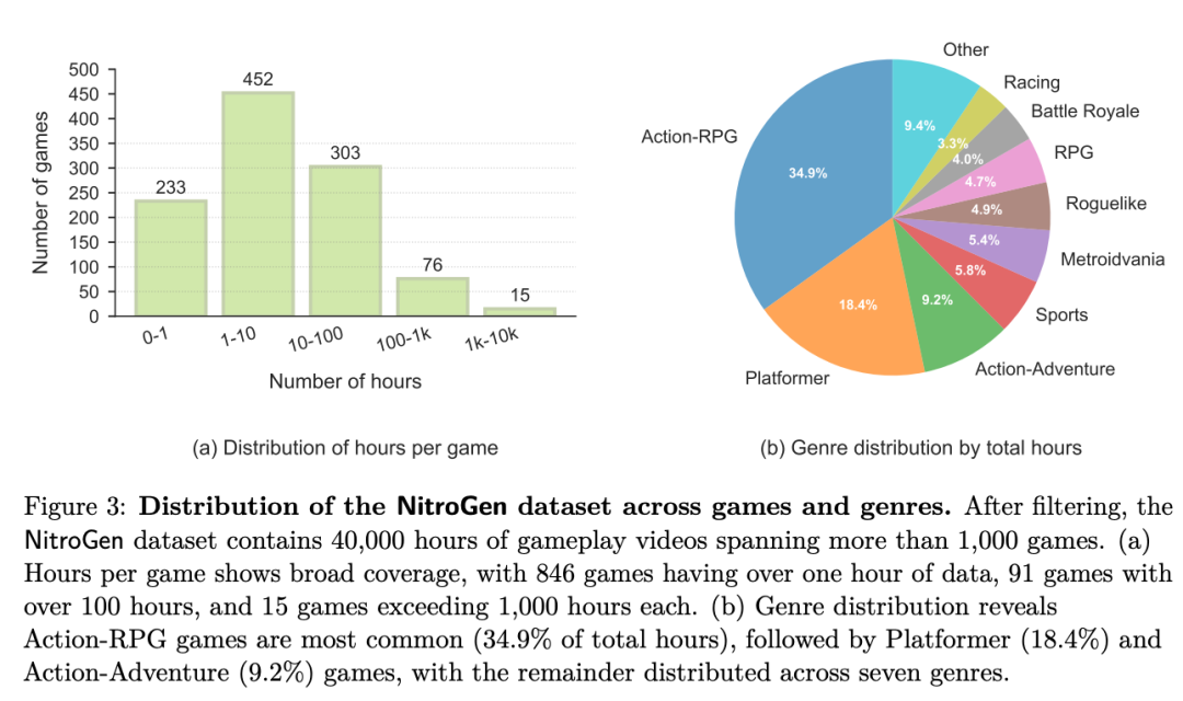 英伟达利用这一技术,构建了包含40,000小时、覆盖1000多种游戏的NitroGen数据集。