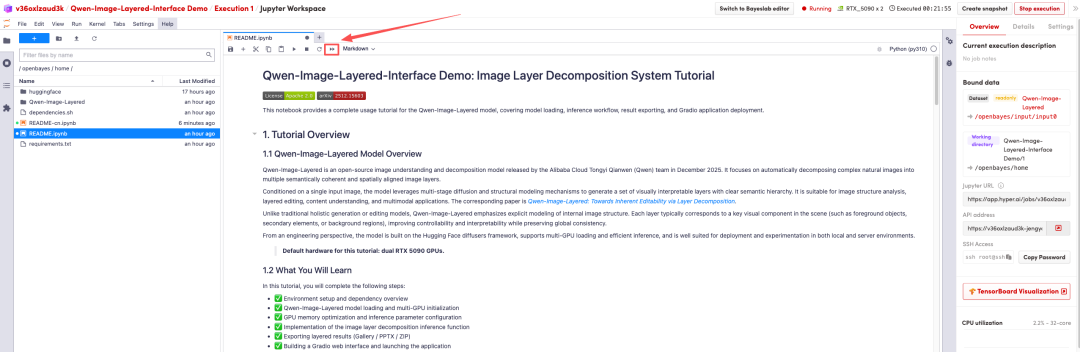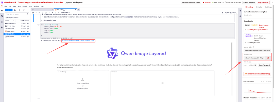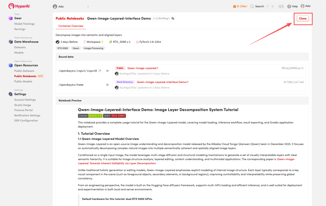 目前,「Qwen Image Layered Interface 自动拆分多个图层」已上线至 HyperAI超神经官网(hyper.ai)的教程板块,一键部署即可在线体验图像分层编辑。