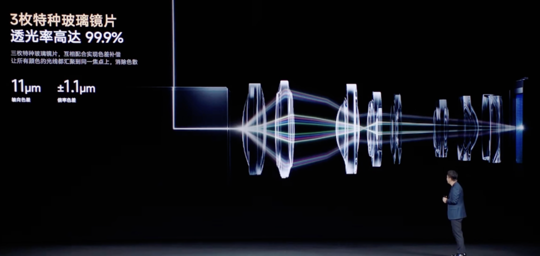 其中包括3片特种玻璃镜片,透光率高达99.9%,能够让所有颜色的光线汇聚于一点,从而消除色差。