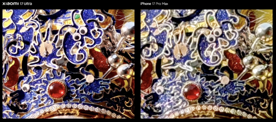 到了90mm,小米17 Ultra对细节中宝石质感的还原效果,也明显超过iPhone。
