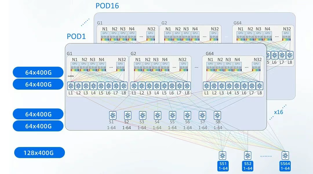 元脑HC1000创新设计了DirectCom极速架构,每计算模组配置16颗AIPU,采用直达通信设计,解决传统架构的协议转换和带宽争抢问题,实现超低延迟;计算通信1:1均衡配比,实现全局无阻塞通信;全对称的系统拓扑设计,可以支持灵活的PD分离、AF分离方案,按需配置计算实例,最大化资源利用率。