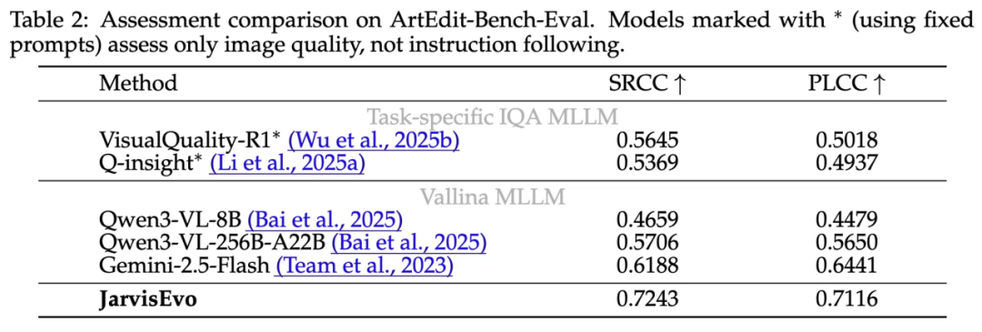 并且其打分与人类主观偏好的相关性(SRCC 0.7243)超越了GPT-4o (Gemini-2.5-flash) 和专门的IQA模型。