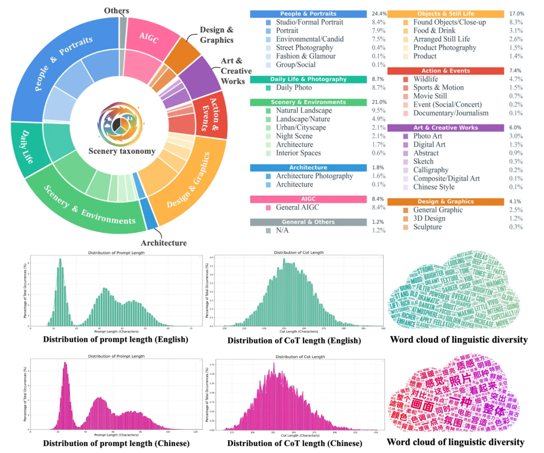 为了支撑上述训练,团队构建了ArtEdit——一个包含170K样本的双语(中/英)专业修图数据集。