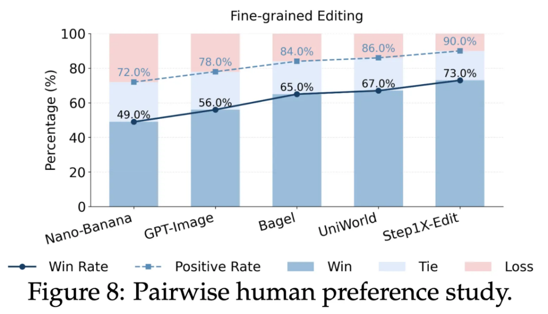 在包含 200 个样本的人类主观评测中,JarvisEvo在与Nano-Banana的对决中取得了49%的胜率(远超对手Nano Banana的28%),证明了其修图结果更符合人类审美 。