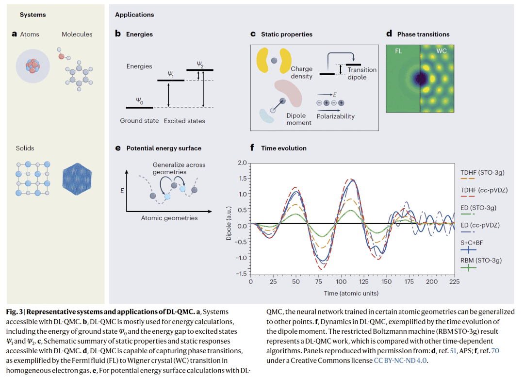 图 3|DL-QMC 可处理的体系类型与物理问题。