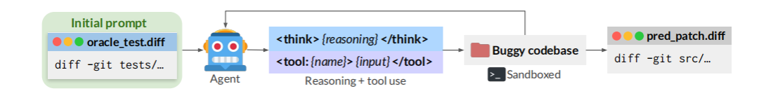 SSR 的设计原则是减少对代码库先验知识的依赖,以提升方法的通用性与可扩展性。它不依赖于特定环境的预配置,智能体要通过与环境的交互,自主探索测试的运行方式并理解其结构。该极简输入设定使 SSR 几乎无需额外配置即可应用于不同代码库,显著降低了使用与迁移成本。