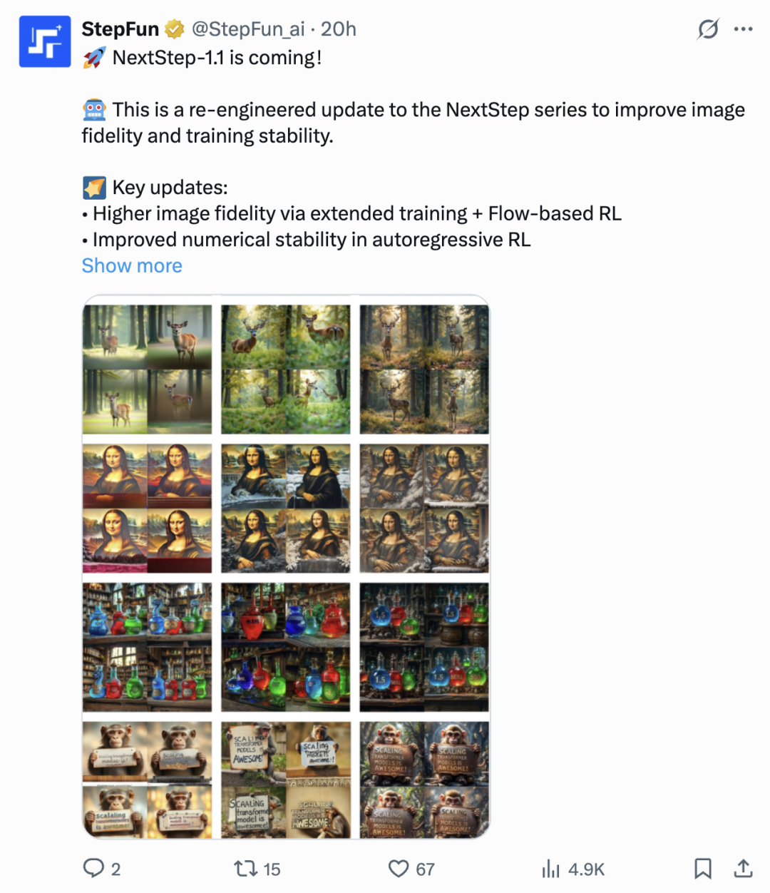直到刚刚,用最新的图像模型NextStep-1.1,扳回一球。