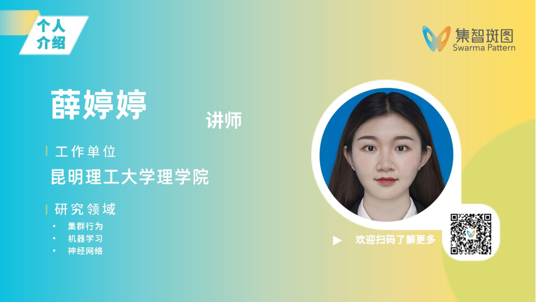 薛婷婷,昆明理工大学理学院系统科学系讲师,硕士生导师,2024年毕业于北京师范大学系统科学学院并获博士学位。主要从事生物集群行为社会互动机制的研究,聚焦鸟群、鱼群等集群系统的动力学规律,融合实验模型构建、多尺度数据分析与机器学习方法,揭示集群涌现、自适应调控及环境响应的核心机制。在Physical Review Research、Machine Learning: Science and Technology、PLOS Computational Biology等期刊发表多篇论文,主持数学建模与机器学习交叉项目、高校人培项目。