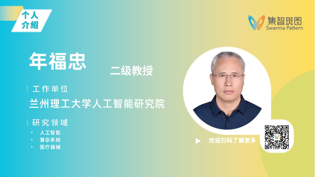 年福忠,兰州理工大学人工智能研究院院长,二级教授、博导,甘肃省领军人才。博士毕业于大连理工大学,曾任清华大学访问学者(中组部“西部之光”),现为复杂系统智能信息处理团队负责人,入选“陇原青年创新人才扶持计划”等人才计划,兼任中国自动化学会计算社会与社会智能专委会常委,中国医学装备协会医疗器械创新与应用分会常委等。研究成果获甘肃省自然科学二等奖(排名第1),甘肃省高校科技进步一等奖(排名第1),甘肃省高校科研优秀成果二等奖(排名第1),甘肃省教育厅教学成果奖,辽宁省自然科学三等奖等多项奖励。近年来,在以第一作者或通信作者身份在IEEE Trans. NSE、IEEE Trans. CSS等SCI期刊上发表论文100余篇,出版专著1部,教材2部。近年来主持完成包括国家自然基金项目(3项)在内的各类科研项目20余项,其中由其主持研发的多导经络智能检测仪,获国家医疗器械注册证,同时获得1000万元风投基金,产品已在北京护国寺中医医院等多家医院临床应用。相关工作被新华社专访,新浪、凤凰网等国内主流媒体转载。