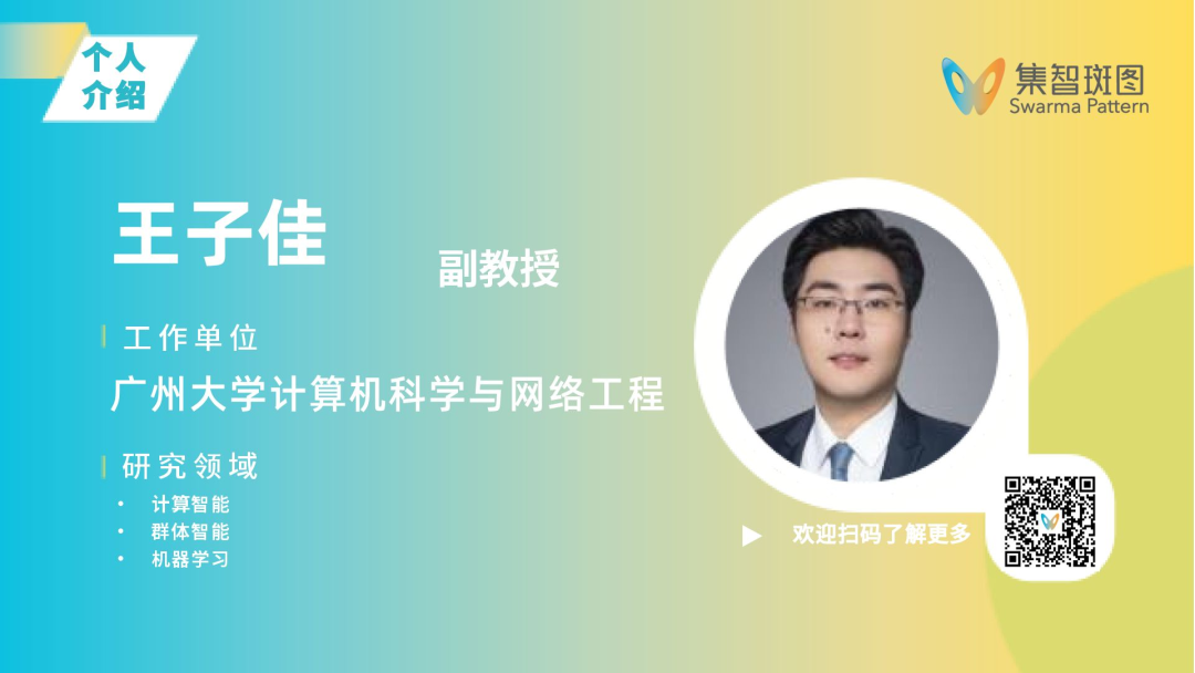 王子佳,男,博士,广州大学计算机科学与网络工程学院副教授,硕士生导师。主要研究方向:计算智能、群体智能、机器学习。2015年本科毕业于中山大学自动化系,获工学学士学位,2020年直博毕业于中山大学计算机系,获工学博士学位;毕业后至2021年7月在腾讯科技(深圳)有限公司担任高级算法研究员;2021年8月以百人计划青年学者身份进入广州大学任副教授,现在是学院青年干部储备人才。2023-2024年度广州大学“最受学生欢迎的教师”。目前主持国家自然科学基金青年基金项目一项、广东省自然科学基金面上项目三项、广州市基础研究计划市校(院)联合资助项目一项、广州市基础与应用基础研究项目一项。累计发表论文40余篇,其中中科院JCR一区和IEEE Transactions论文20余篇,包括8篇IEEE Transactions on Cybernetics(IEEE TCYB,IF=10.5)、4篇IEEE Transactions on Evolutionary Computation(IEEE TEVC,IF=12.0),5篇入选ESI高被引论文,4篇论文被列入ESI研究前沿。现已荣获吴文俊人工智能优秀博士学位论文奖(全国9人)、ACM广州分会新星奖(广东省3人)、ACM广州分会优秀博士学位论文奖(广东省2人)、广东省计算机科学青年学术秀一等奖(广东省3人)。担任IEEETCYB、IEEE TEVC、IEEE TNNLS、IEEE TSMC、IEEE TIFS、IEEE TETCI等多本顶级刊物的审稿人。现任IEEE高级会员、CCF高级会员、中国计算机学会协同计算专业委员会委员、中国自动化学会粒计算及其应用专业委员会委员、中国仿真学会智能仿真优化与调度专业委员会委员、中国图学学会图学大数据专业委员会委员、广东省计算机学会大数据专业委员会委员。受邀出任亚洲人工智能技术大会(ACAIT 2023/2024/2025)和国际机器智能与应用大会(MiTA2024)的Session Chair,担任国际期刊《Complex System Modeling and Simulation》、《CAAI Transactions on Intelligence Technology》的青年编委,并荣获国际期刊《Human-Centric Intelligent Systems》的杰出审稿人奖。