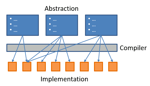 抽象并不会消失,只是被编译器展开,最终落实到一行行具体的实现上。