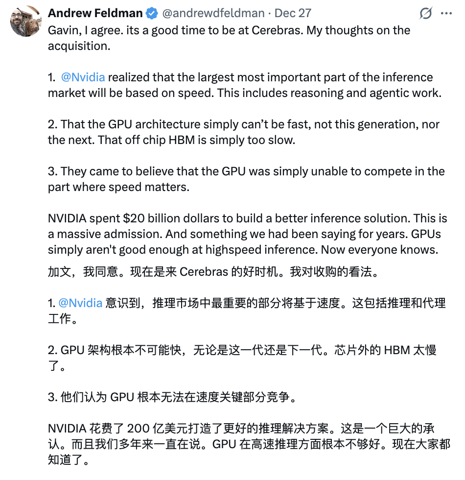 而他的这一连串技术剖析,纷纷指向了英伟达帝国防守最薄弱的那块领土——推理。