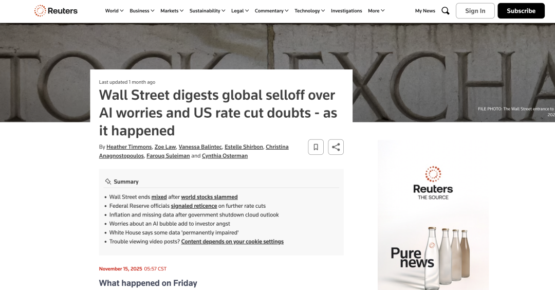 「市场在估值和预期方面确实存在一些泡沫。我们已经度过了财报季的核心阶段,看到很多公司盈利超出预期,但我们并没有看到股价大幅上涨,所以我认为这只是泡沫在逐渐消退。」Pathstone 投资策略董事总经理在路透社的报道中透露。