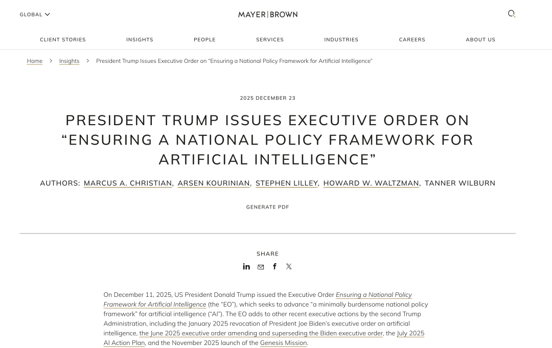 MAYER BROWN 披露特朗普在新行政令中抢占立法优先权
