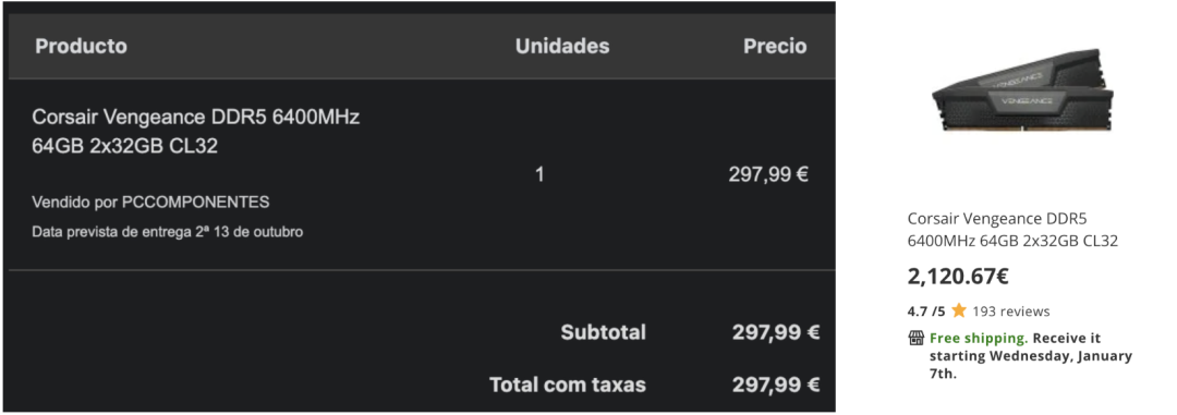 两个月前,自己以350美金买的64G内存条,如今直接飙到2500美金。