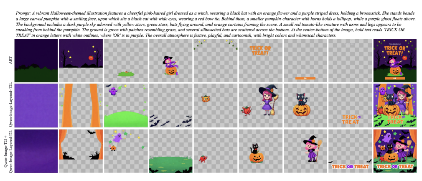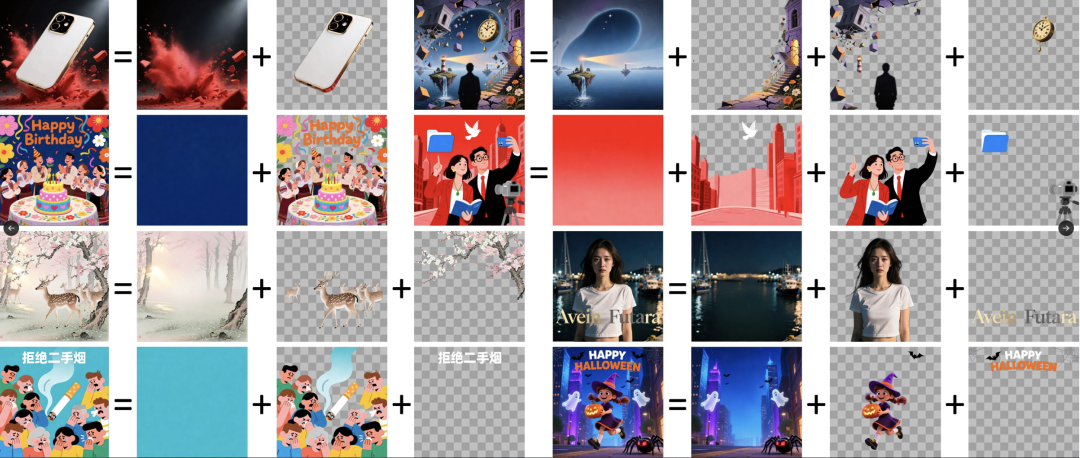 还不止如此,在隐藏空间里中,模型能够被逐步「引导」去学会:哪些像素该属于哪一层、哪些区域需要保留透明度、哪些内容应该被分离开来。