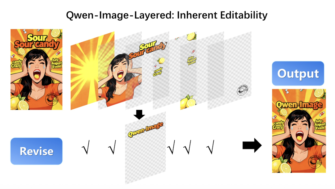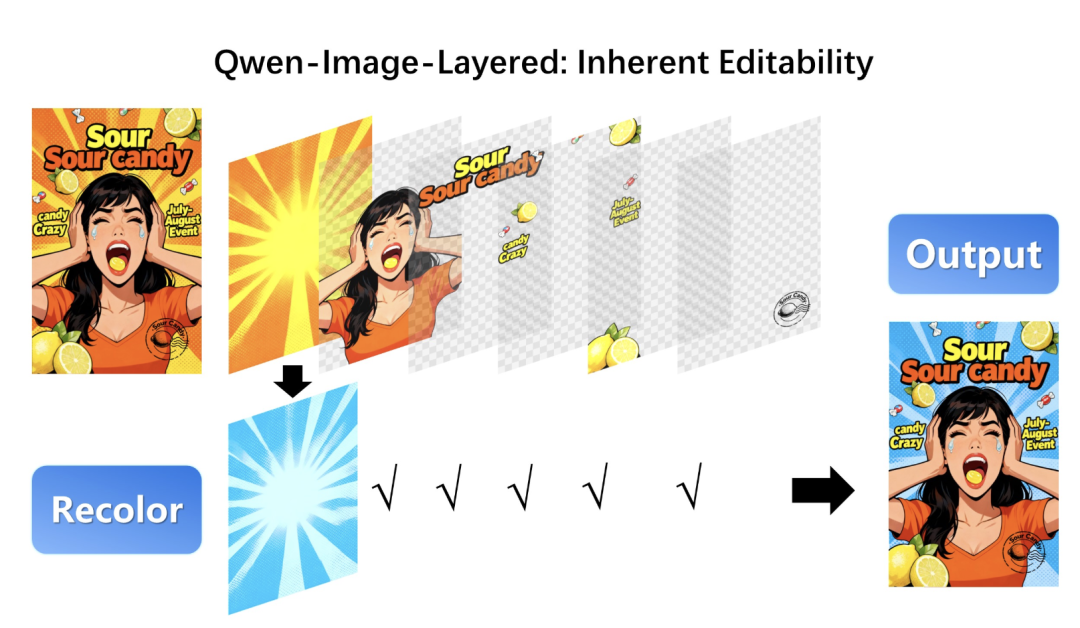 但是Qwen—Image—Layered模型能做的还不止只是分离图层这么简单,我们还可以对图层进行二次编辑修改。