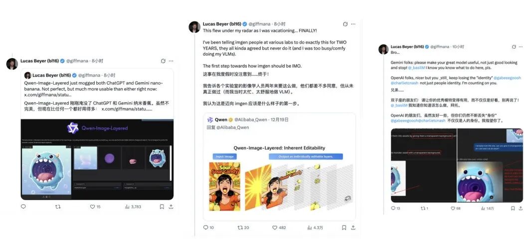 刚刚,ViT核心作者、Meta超级智能团队成员Lucas Beyer连发三条帖子,怒赞通义千问不久前发布的开源模型Qwen—Image—Layered。