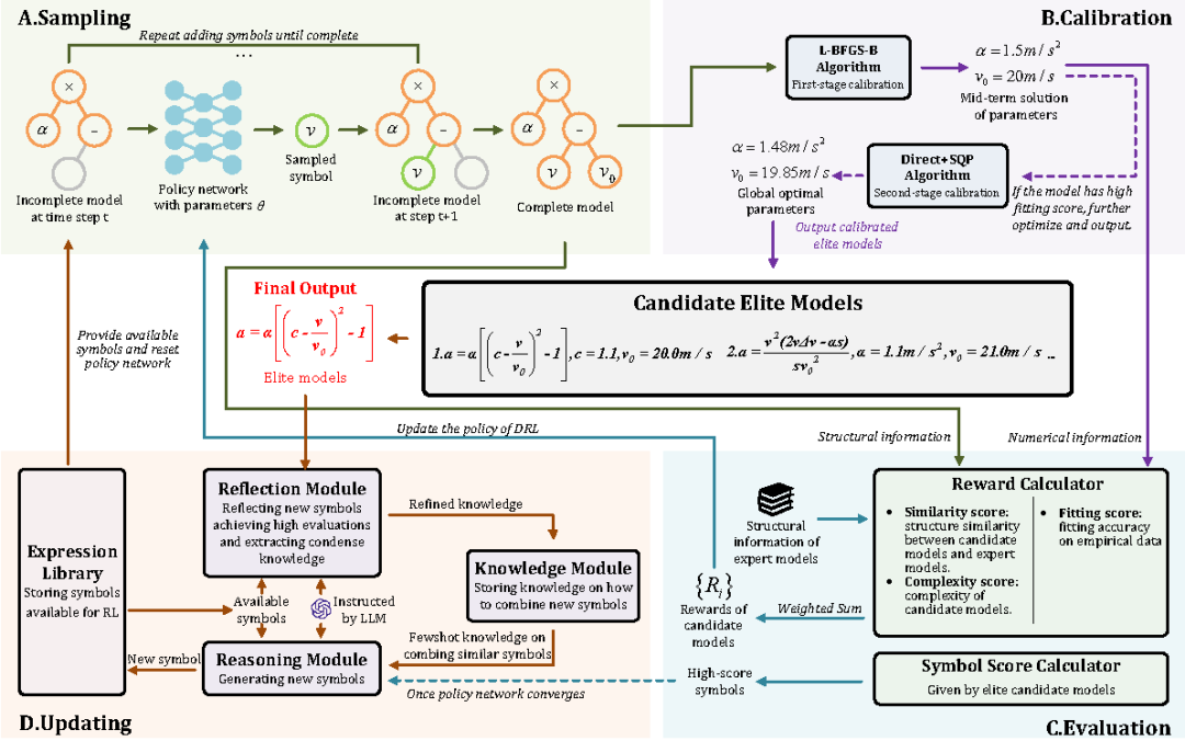 【新智元导读】清华大学等多所高校联合发布SR-LLM,这是一种融合大语言模型与深度强化学习的符号回归框架。它通过检索增强和语义推理,从数据中生成简洁、可解释的数学模型,显著优于现有方法。在跟车行为建模等任务中,SR-LLM不仅复现经典模型,还发现更优新模型,为机器自主科学发现开辟新路径。