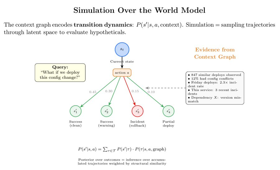 一个足够强大的上下文图谱,就成了一个组织的「世界模型」。它搞清楚了决策是怎么走的、连锁反应是怎么发生的、不同部分是怎么互动的。掌握了这些,你就能开始模拟未来了。
