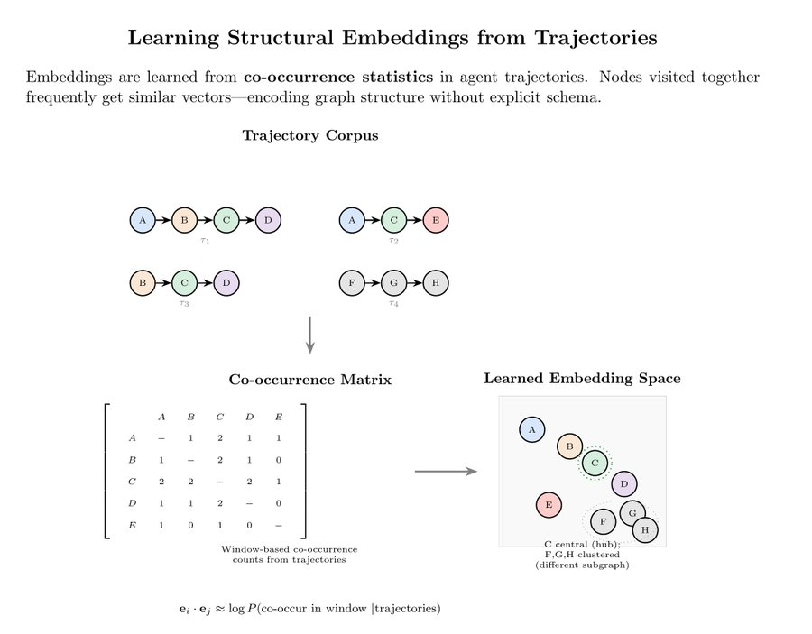 我们平时用的嵌入(embeddings)是基于语义的,意思是「含义相近,向量就相近」。但这不够。我们需要的是能编码结构的嵌入,意思是「扮演的角色相似」或者「在决策中经常一起出现」。