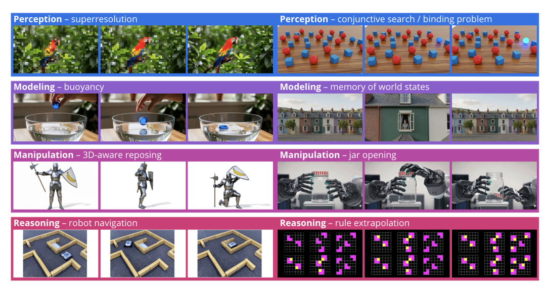 也正因为如此,Veo 3用感知、建模、操控、推理4大核心能力能搞定62种没学过的视觉任务。
