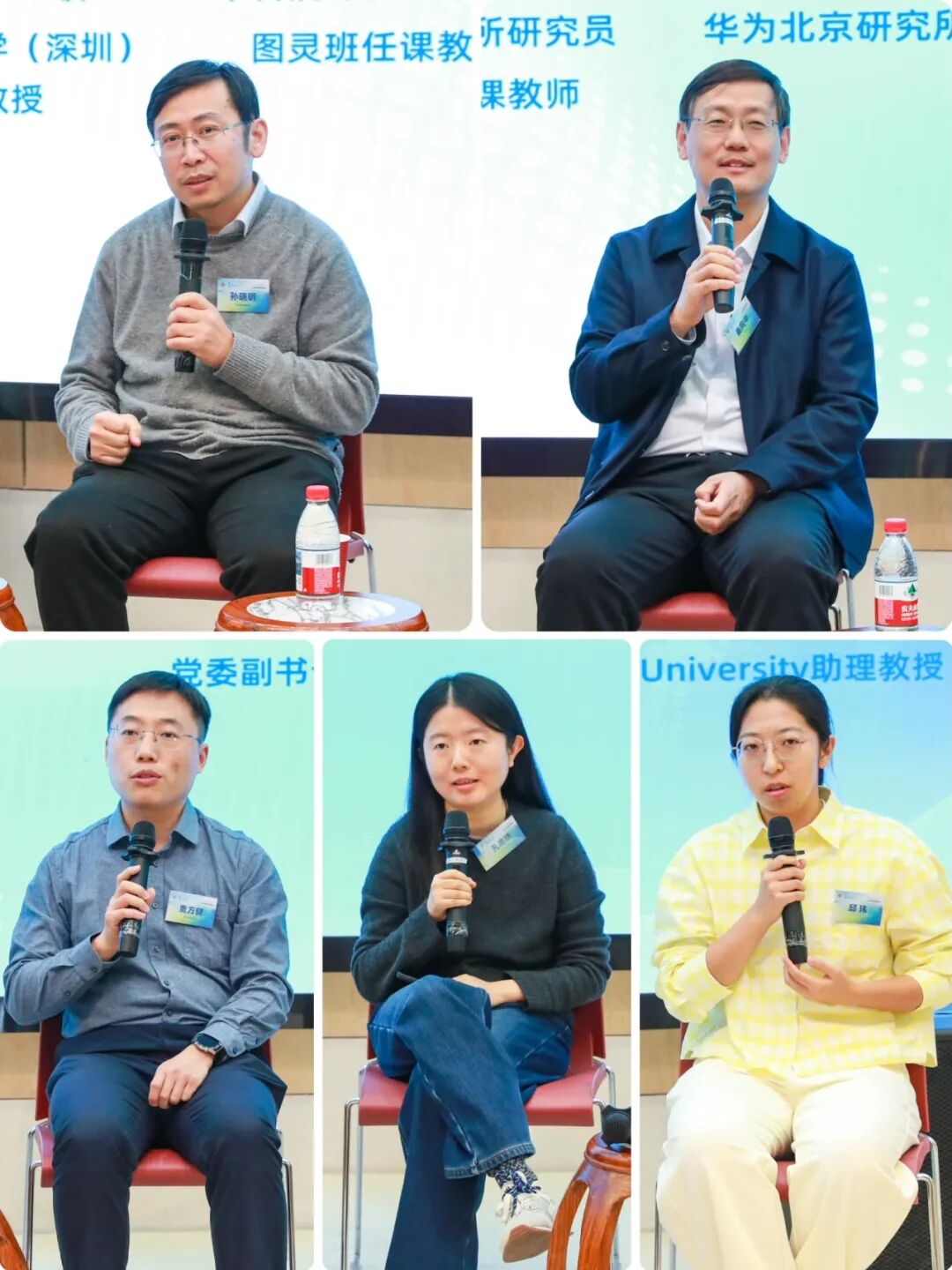 随后举行的圆桌论坛以“育见未来:图灵班人才培养与职业规划”为主题,由香港中文大学(深圳)助理教授、2016 级校友林涛主持。中国科学院计算技术研究所研究员孙晓明,华为北京研究所所长姜向中,北京大学信息科学技术学院党委副书记贾方健,计算机学院长聘副教授、2018 级图灵班班主任孔雨晴,莱斯大学助理教授、2015 级北大校友邱玮等嘉宾参与讨论。