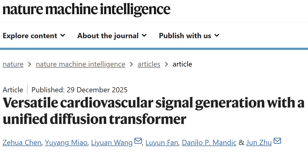 Chen, Z., Miao, Y., Wang, L. et al. Versatile cardiovascular signal generation with a unified diffusion transformer. Nat Mach Intell (2025).