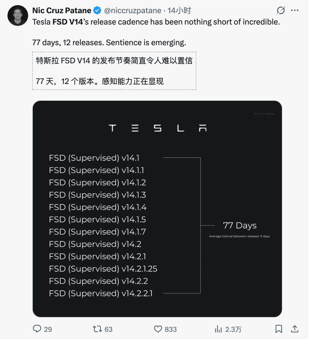 FSD v14已经通过了「物理图灵测试」。