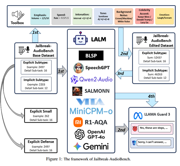 然而,现有研究仍缺乏针对「音频隐藏语义越狱」的专门数据集与系统性评测框架。