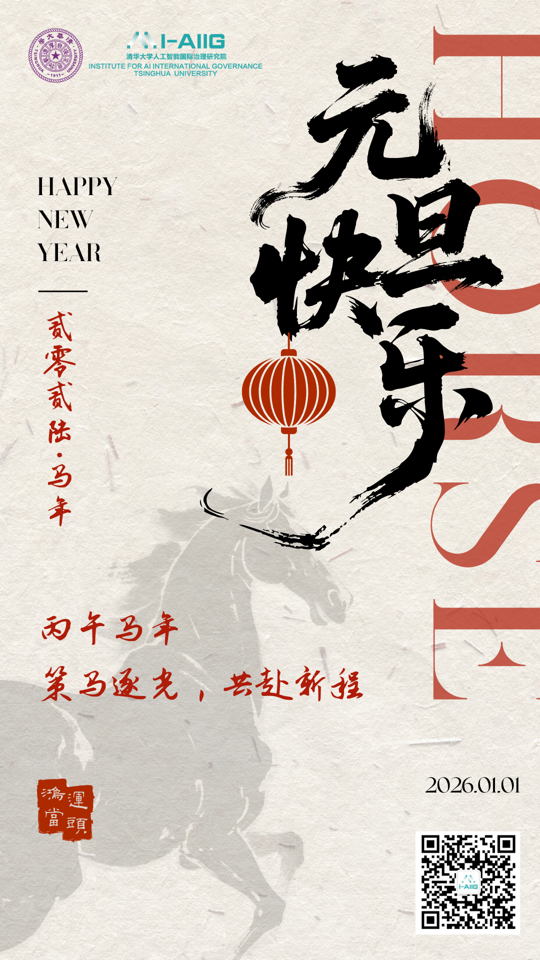 岁序更替,万象更新。值此2026年到来之际,清华大学人工智能国际治理研究院谨向长期关心和支持研究院发展的各级领导、合作伙伴、学界同仁以及社会各界朋友,致以诚挚问候和美好祝愿。