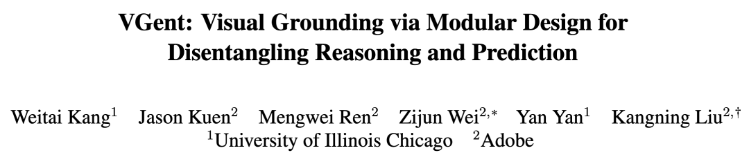 来自UIC(伊利诺伊大学芝加哥分校) 和Adobe的研究团队提出一种模块化的编码器-解码器(Encoder-Decoder)架构VGent,其核心思想是:将高层的语义推理交给MLLM,将底层的像素预测交给目标检测器(detector),最终通过hidden state将这种解耦后的关系进行连接。