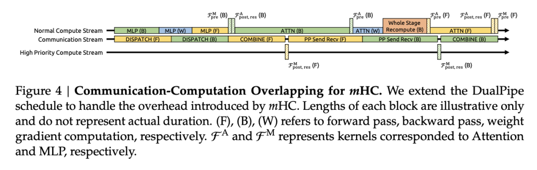 在流水线并行方面,他们扩展了DualPipe调度策略,通过将MLP层的特定内核放在高优先级计算流上执行,实现了计算与通信的重叠。