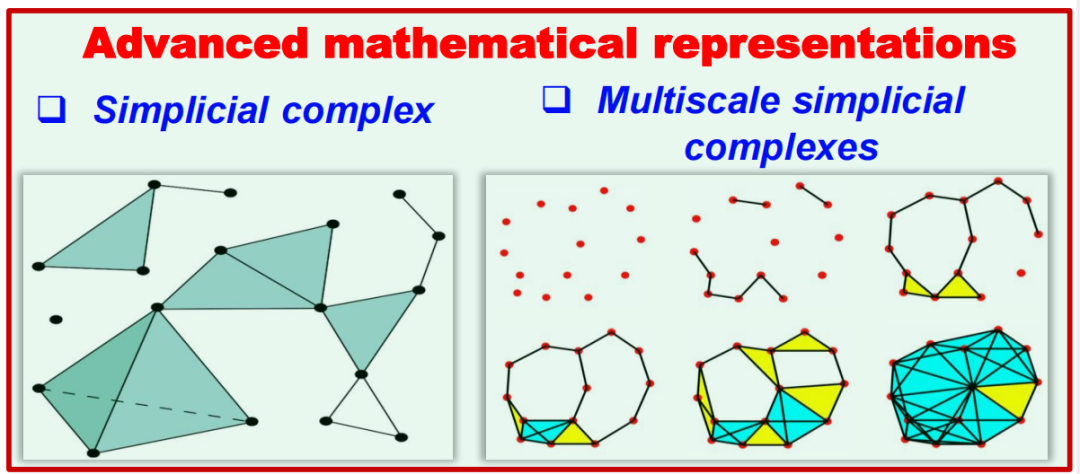 1)单纯复形:采用单纯复形(simplicial complex)的描述方式,相比图描述能捕获数据中更丰富的拓扑和几何信息。