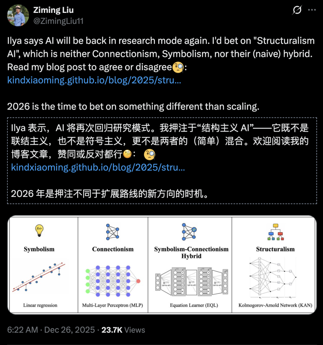 2025年圣诞节,斯坦福大学博士后、清华大学赴任助理教授刘子鸣把矛头对准了Scaling Law。