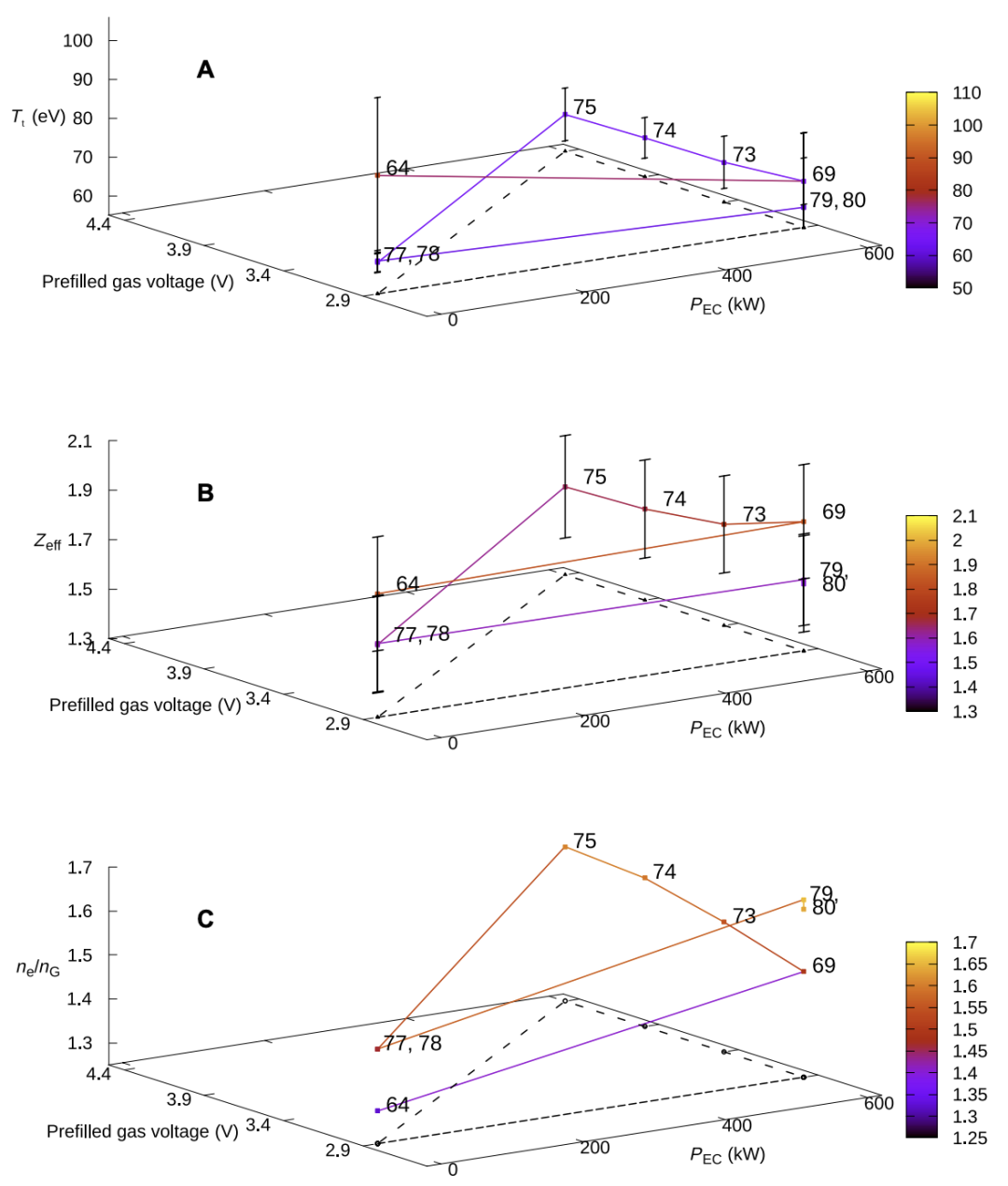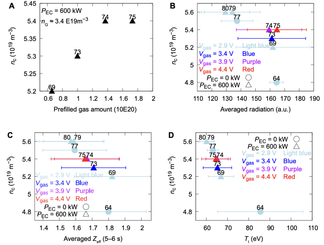 为了在实验中通过上述物理开关进入理论预言的“密度自由区”,研究团队并未沿用传统的启动路径,而是在等离子体启动阶段,利用电子回旋共振加热(ECRH)辅助欧姆加热,并协同施加了远超常规水平的预填充中性气体压力。